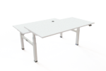 This white laminate table top is based on a 25 mm chipboard. Melamine has a very good durability and is of a very hardy quality.